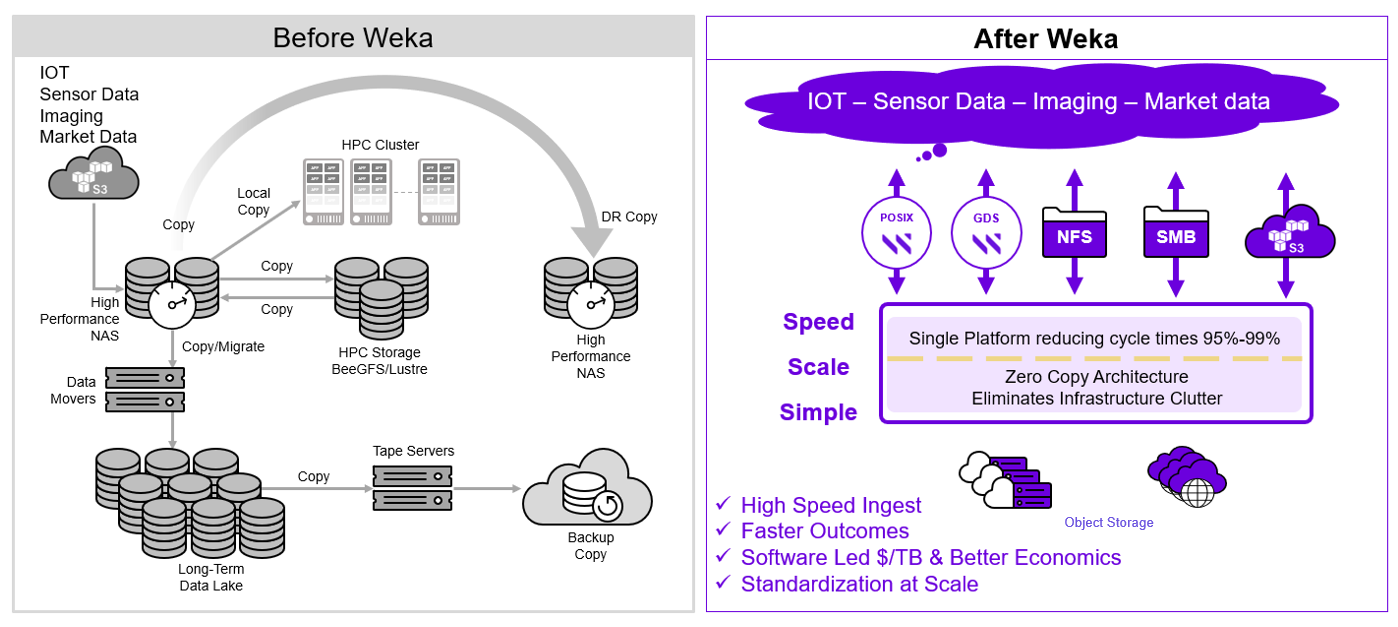 為 AI 而生的 WEKA Data Platform ,為兼具高效能與高擴展性的平行檔案系統,提供企業所需的簡單性、卓越性能和無限擴展性,能在任何地點支援 AI/ML 和 HPC … 等下一代工作負載。其奠基於雲原生架構,可部署在地端、雲端、邊緣或多雲混合等多種環境,完美兼顧效能與成本需求。 WEKA 力助世界領先的企業和研究機構加速創新、研究和探索,包括 Fortune 50 中的 11 家應用 WEKA 解決方案,並幫助他們實現市場的先發優勢。