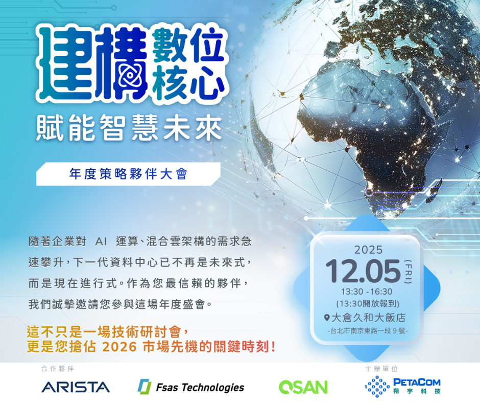✨ AI、資料中心與混合雲架構正加速演進,下一代企業 IT 轉型已不再是未來,而是現在開始。朔宇科技攜手 Arista、Fsas Technologies、QSAN,邀請您一同深入掌握 2026 市場方向與技術布局。🔑 課程重點 🔹Fsas:AI 時代的運算基礎建設( x86 / AI Server)🔹QSAN XF5:全快閃儲存 × AI 資料中心效能革命🔹Arista:下一世代企業網路架構📅 日期:12/05(五)13:30–16:30🏨 地點:大倉久和大飯店👉 限量席次,報名請洽朔宇科技業務窗口